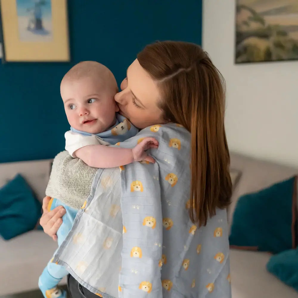 The perfect baby shower or new born gift! Every parent’s best friend. Our adorable cockapoo print muslin is made from pure cotton for a super soft and gentle feel that is kind to baby’s delicate skin. Perfect as a breast feeding cover up, protecting clothing, comfort blanket, burp cloth and so much more!