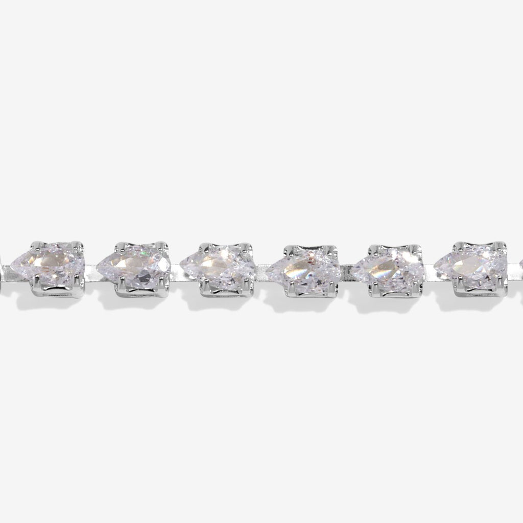 Crafted from high-quality silver-plated brass and adorned with shimmering stones, this tennis bracelet catches the light beautifully for a radiant finish. The adjustable clasp fastening ensures a comfortable, personalised fit, making it ideal for both everyday wear and special occasions.
